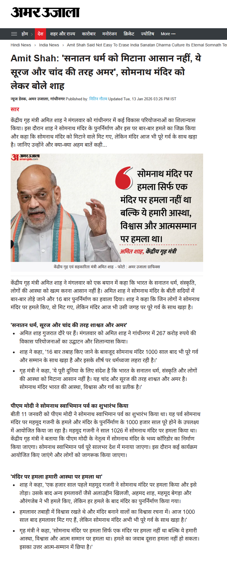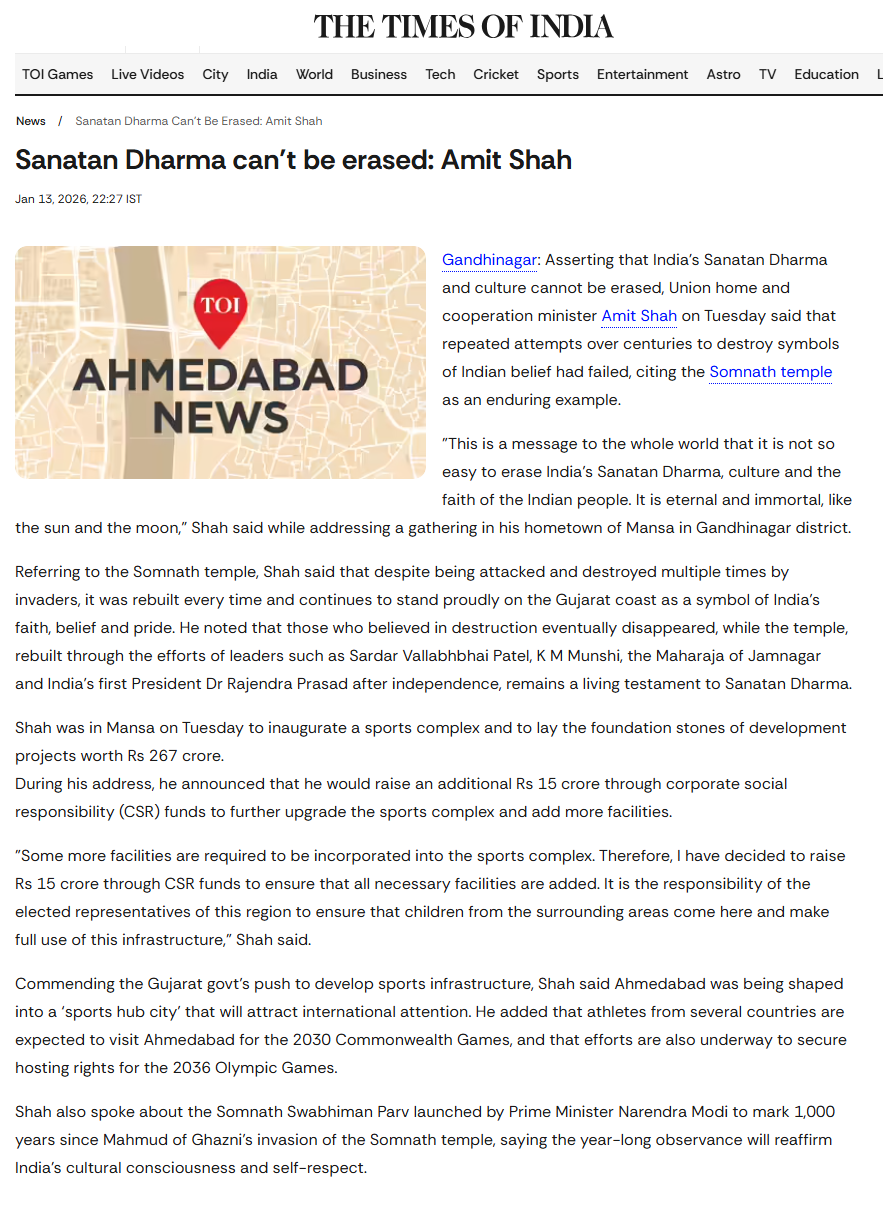 In the year 2016, Amit Shah was made the trustee of the Somnath Temple Trust. Aadi Jyothirlinga Shri Somnath Mahadev Temple is one of the 12 sacred Jyotirlingas, Prime Minister Mr. Narendra Modi and Mr. Lal Krishna Advani are also the trustees of this Trust.