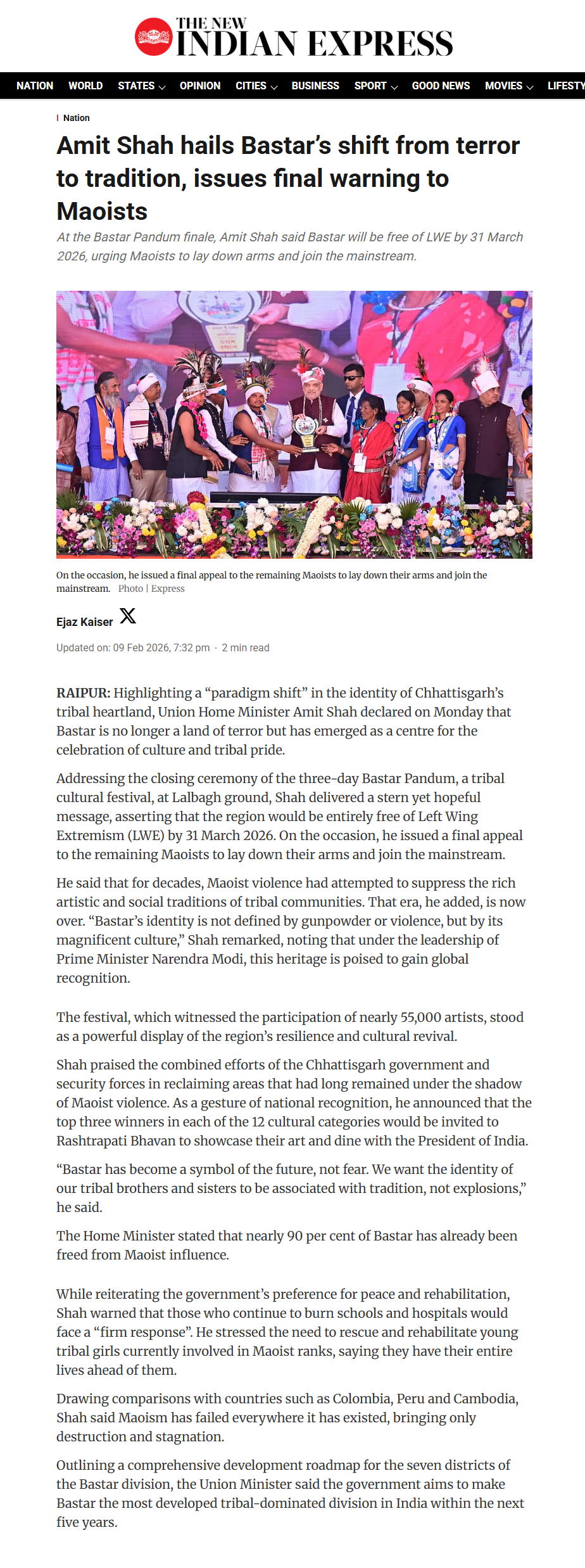 To ensure peace and stability in Kashmir he chose the path of abrogating Article 370 under the guidance of Prime Minister Narendra Modi. Similarly, a series of peace accords with the insurgent groups were struck in the Northeast.