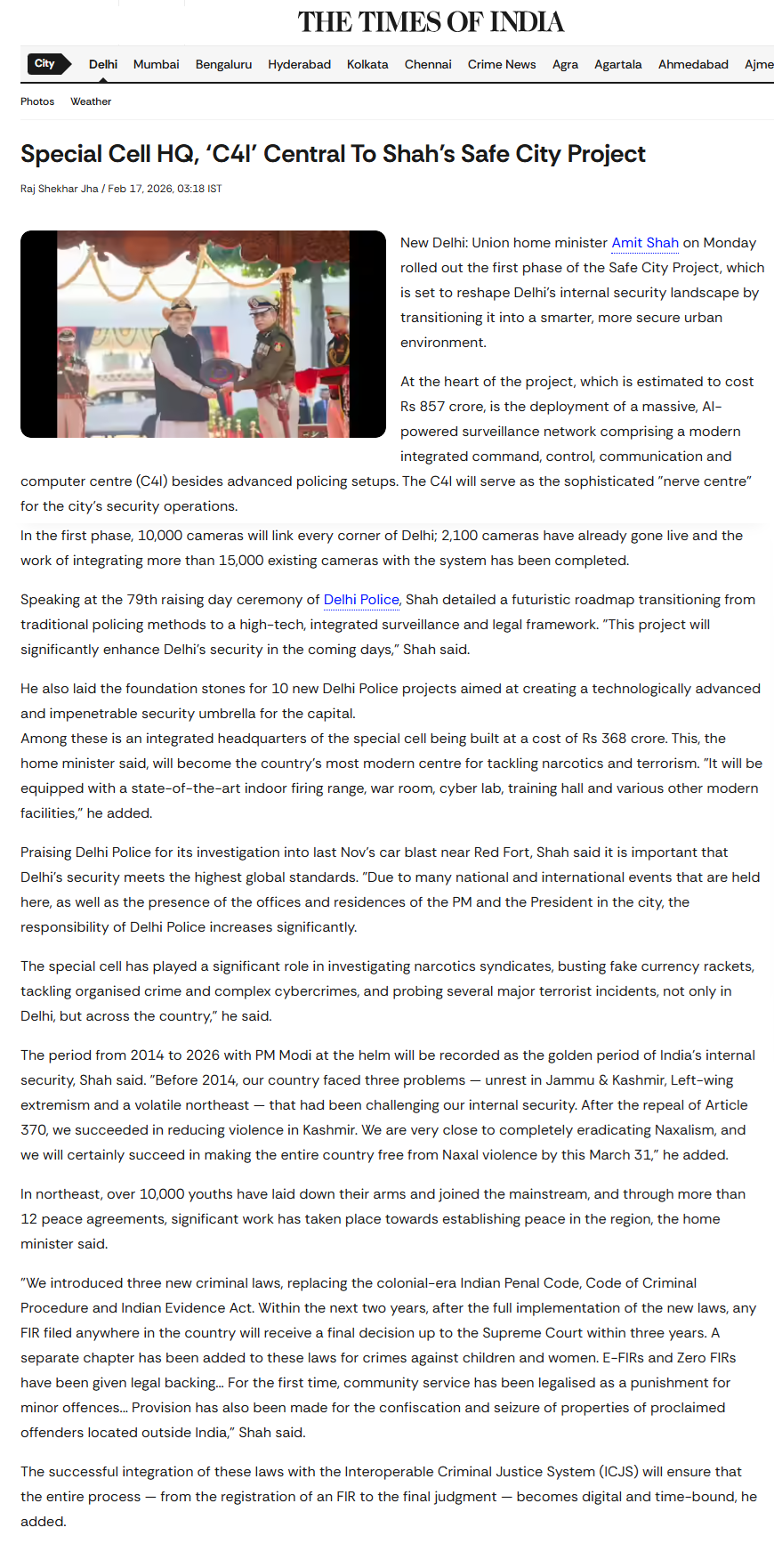 Shri Shah embarked on his next journey as Union Cabinet Minister, bolstered by the success he attained in his previous tenure. In his first tenure, Shah was adorned by the achievements of abrogating Article 370, containing terrorism in Jammu and Kashmir, the Northeast, and left-wing extremist-affected areas. As the Home Minister, Shri Shah was also credited with the achievement of replacing colonial criminal laws with indigenous legislation, paving the way for comprehensive reform in the criminal justice system.