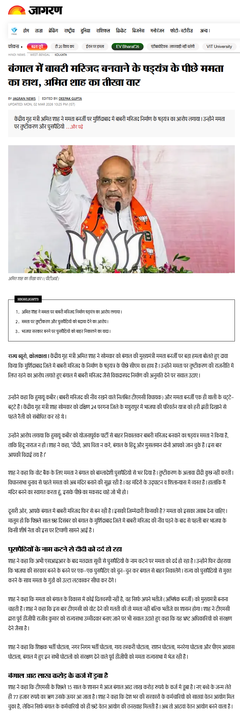 Strategy for Weak states: Shah devised a strategy to expand party footprint in seven weak states namely Andhra Pradesh, Assam, Kerala, Odisha, Tamilnadu, Telengana and West Bengal. Party leaders panned out in these states, programs were made for PM Modi and Shah himself extensively toured. The strategy worked, BJP formed its government in Assam and increased its Loksabha MP tally from 14 in 2014 to 41 in 2019 in these seven states.