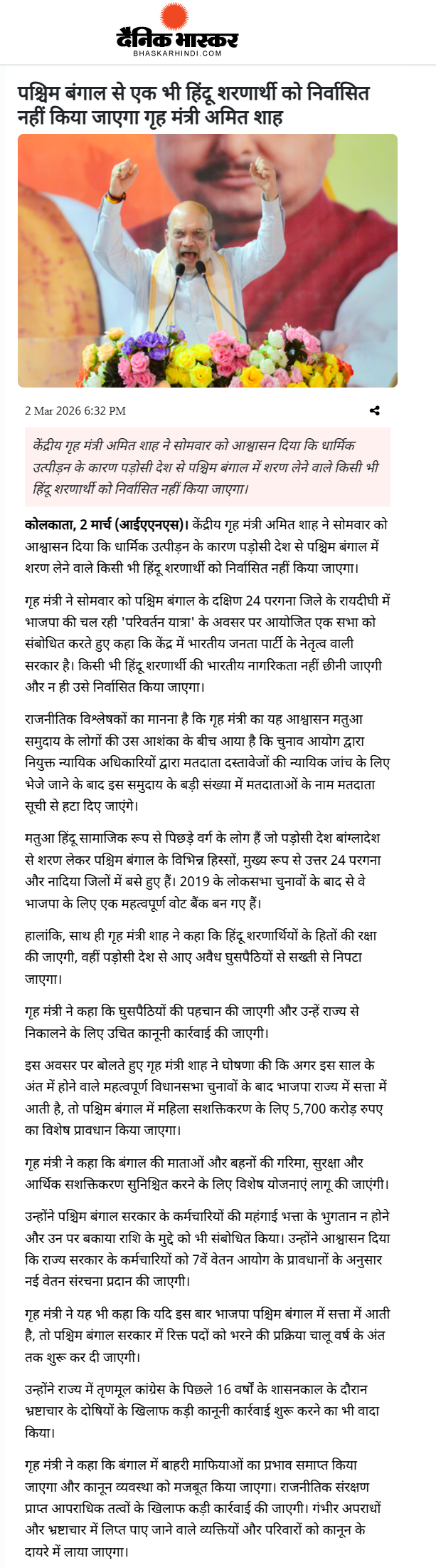 Citizenship Amendment Act (CAA): Besides Article 370, CAA has been part of the BJP's election manifestos for a long time. It was only Shah under PM Modi who not only had the resolve to legislate the CAA successfully but also the courage to do the same. Baffled opposition instigated demonstrations across the country but Shah did not budge and ensured that the CAA becomes a reality. This legislation has given hopes to millions of Indians who were facing unabated persecution on the basis of religion in other countries for decades. Thousand of people have already been given Indian citizenship under the CAA.