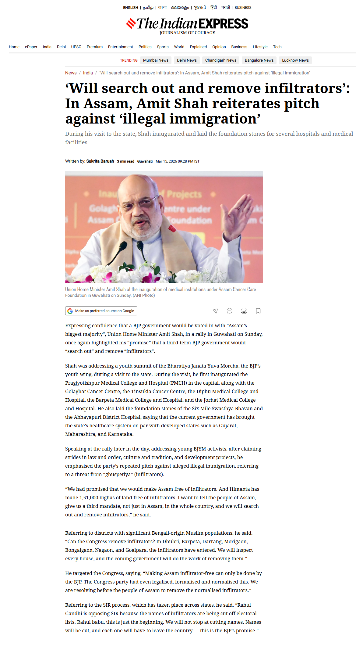 Return of peace and Progress in North East: After becoming the Home Minister, Amit Shah also peacefully resolved the pending problems related to the borders of the north-eastern states and internal security there. Vexed issues like Bru-Reang Pact, resolution of Assam-Meghalaya border dispute, resolution of Bodo problem are among few achievements worth mentioning.