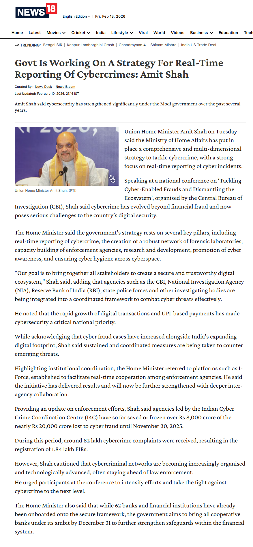 Handling Left Wing Extremism & Terrorism: Shah made a concrete strategy on the policy of zero tolerance against left-wing extremism. Today, this menace has been pushed to the corner and is breathing its last. The newly attained readiness of the internal security system to tackle terrorism has reduced terrorist activities to mere sporadic incidents.