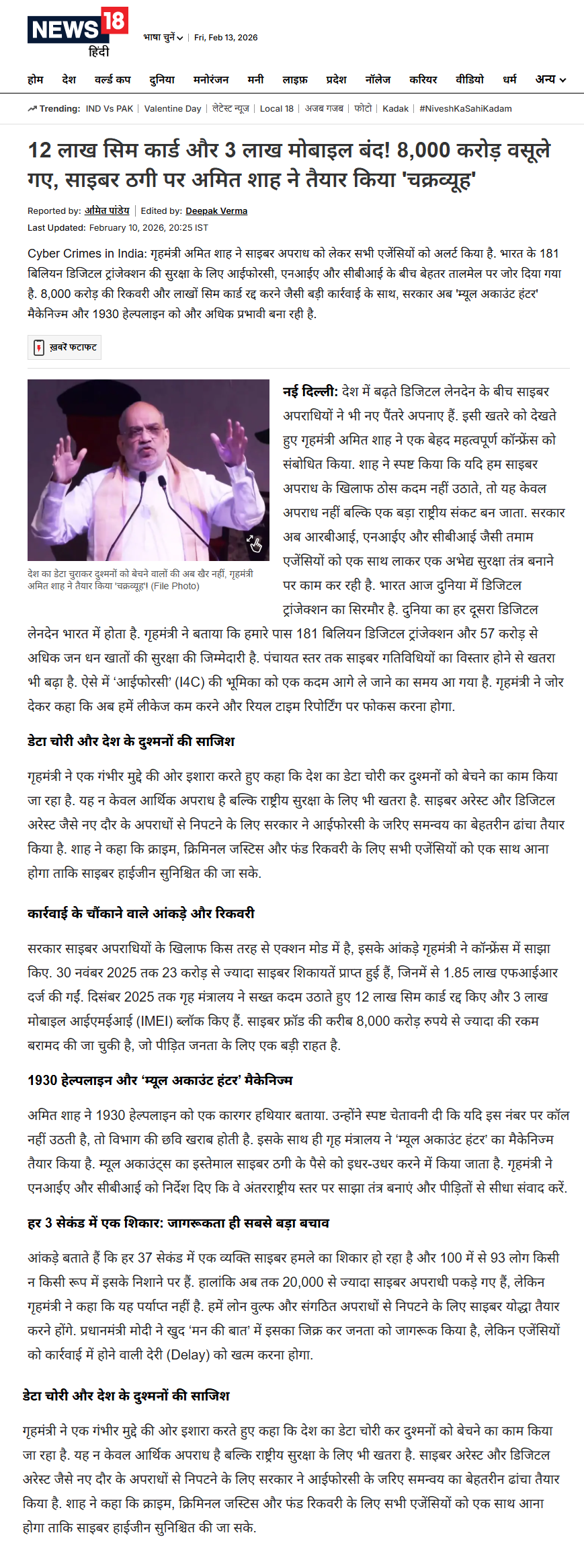The upshot was, Jammu and Kashmir showed a 32% decrease in terror incidents, a 14% decrease in the death of civilians, a 52% decrease in the death of security personnel, and a 14% decrease in terrorist recruitments in the very first three years of his tenure as the Home Minister. In the first three years of his tenure, Northeast India has seen a 68% decrease in terror incidents, a 60% decrease in the death of security personnel, and an 83% decrease in the death of civilians.